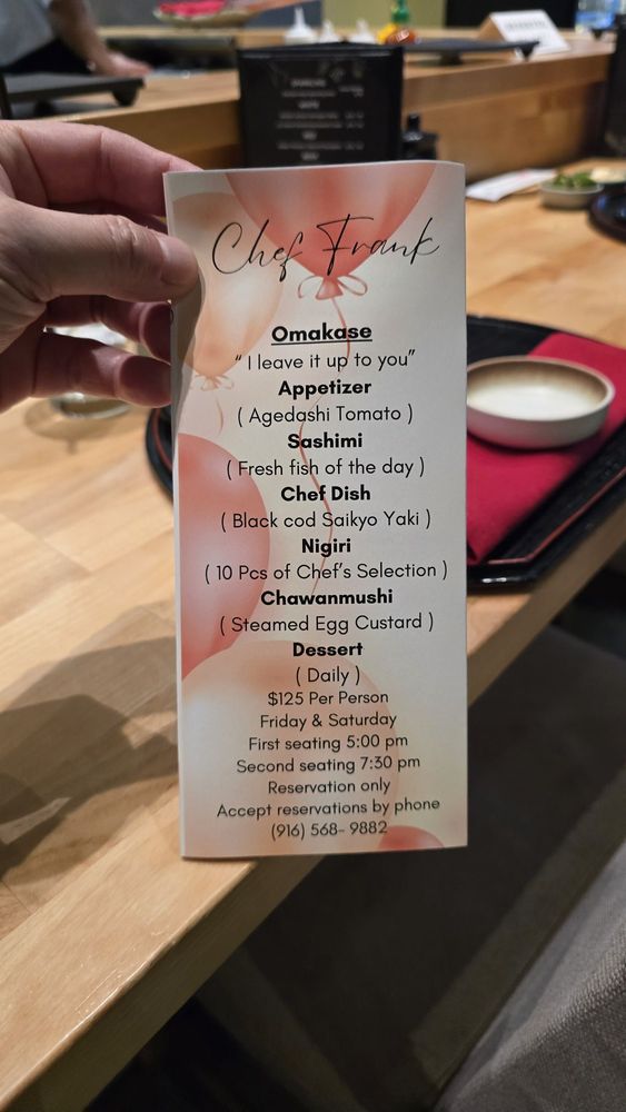 Chef Frank Japanese Cuisine, located in Sacramento, offers a unique Japanese dining experience with a range of options for sushi enthusiasts. Customers praise the attentive service of servers like Nikki and the vibrant atmosphere of the restaurant. The menu features dishes like the BBQ Albacore, Oyster Shooter, Hokkaido Roll, Beef and Chicken Teriyaki Bento Box, and a selection of fresh sashimi. The standout item is the Mystery Box, offering a variety of fish with different accompaniments and flavors. Guests can also indulge in celebratory desserts like the Azuma green tea cheesecake. Overall, Chef Frank Japanese Cuisine provides a high-quality dining experience with a mix of traditional and innovative dishes, making it a must-visit spot for sushi lovers in Natomas.